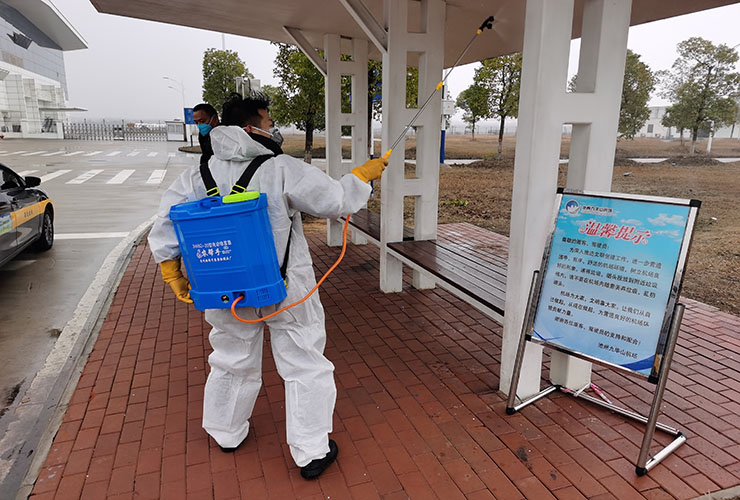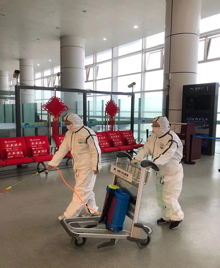 负责机场防疫消杀工作的各青年突击队立足岗位职责,对机场划分的17个区域进行包保。每天早晨7点多开始,突击队员采用手动喷壶、电动背负式喷壶等工具,喷洒雾状消毒液,按照要求、次数对各区域进行全面消杀,并将6个区域设置的废弃物回收点内的废弃口罩、一次性手套等进行集中销毁。队员们说:“每天身上最熟悉的是消毒液的味道”。